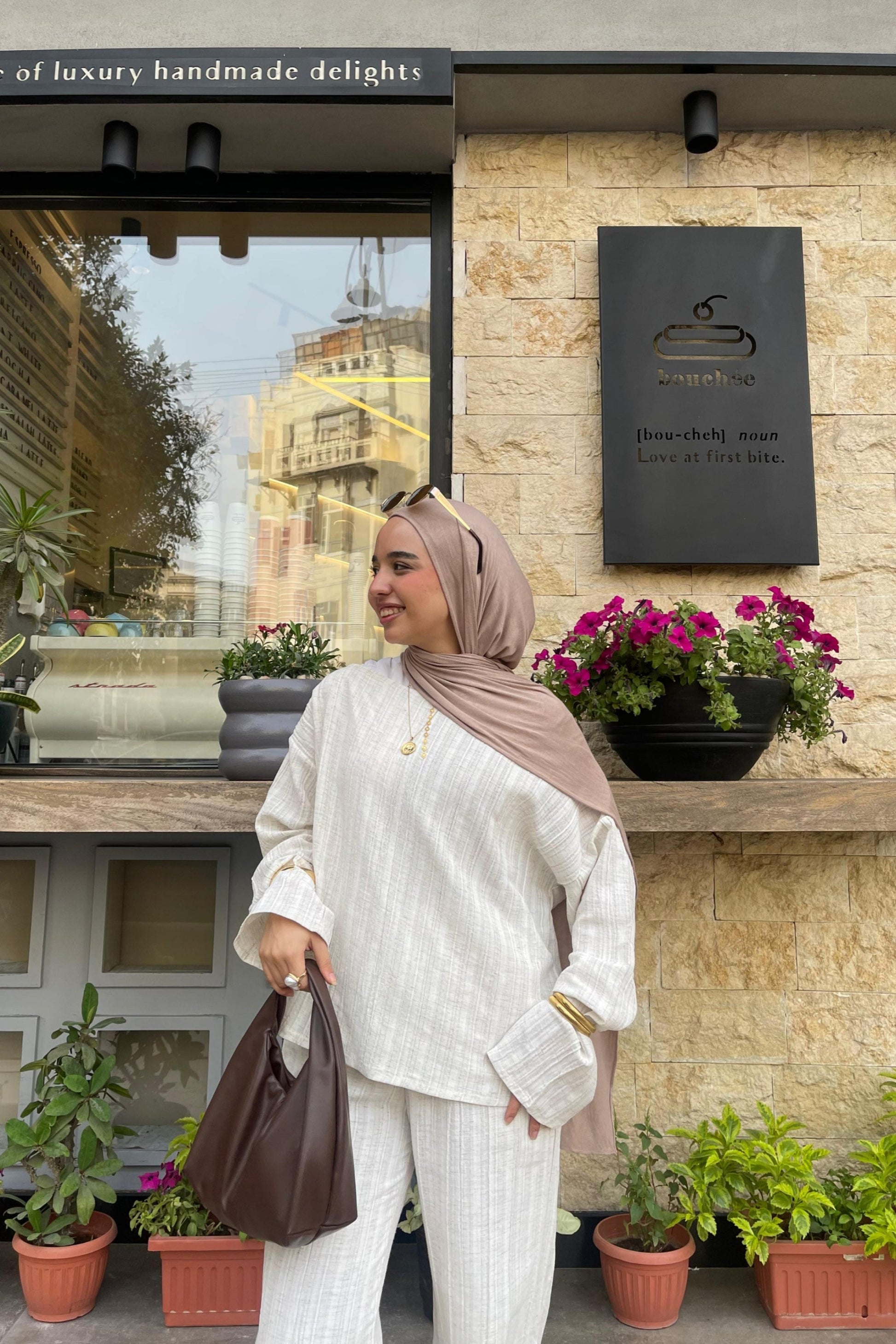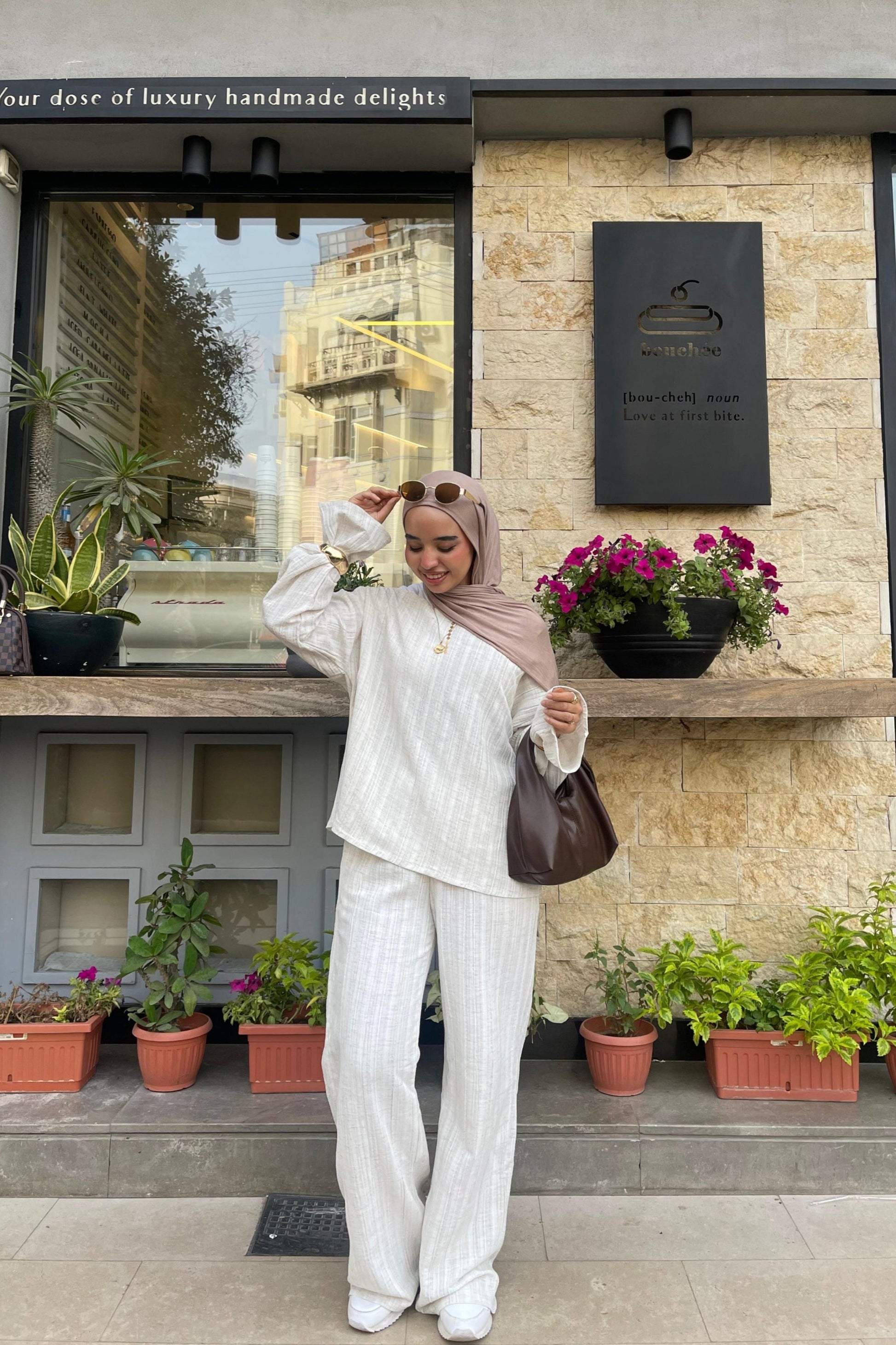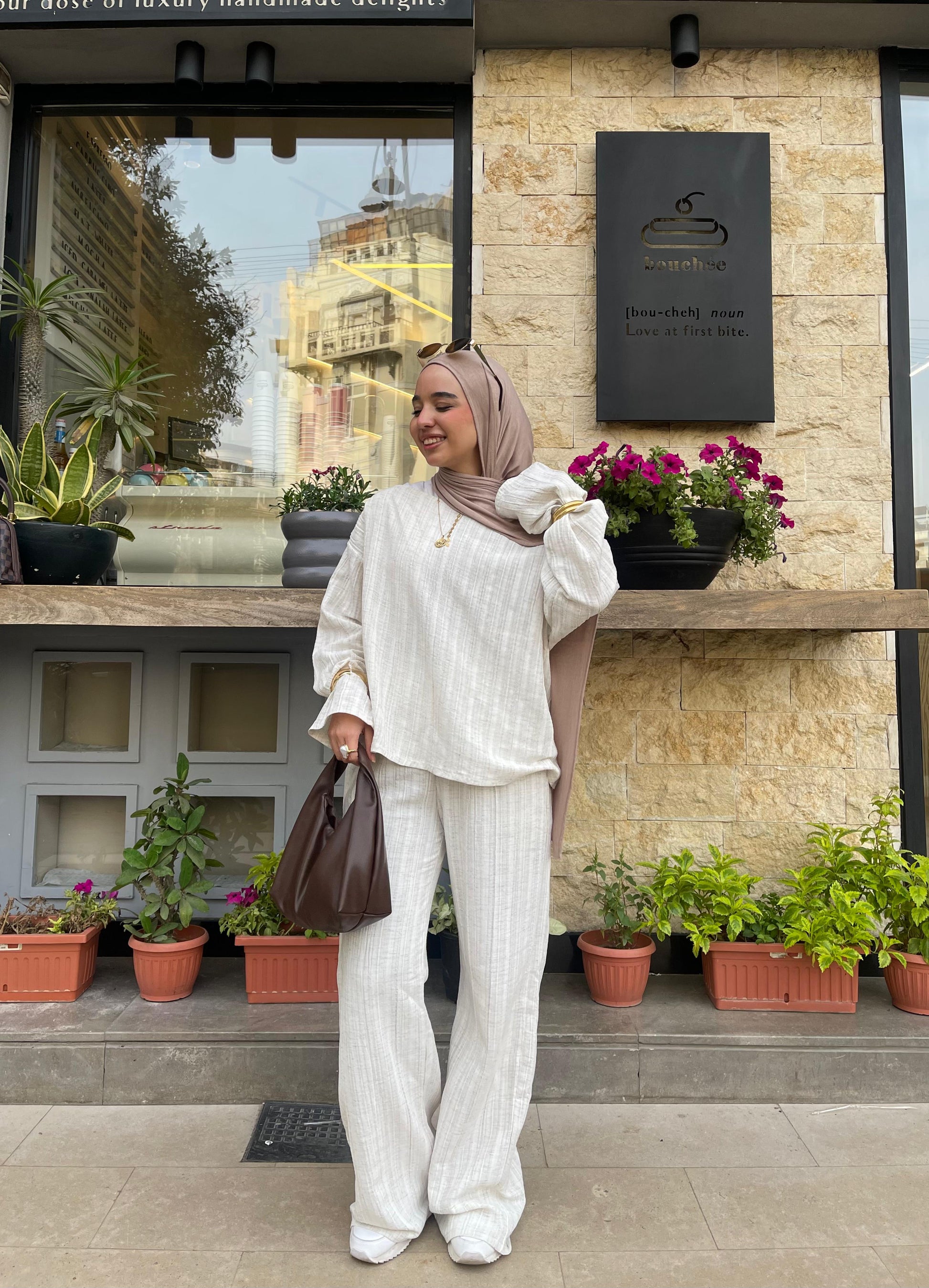This crème Set combines comfort and style with a unique, non-transparent material that feels as good as it looks. Perfect for any occasion, it’s easy to style in countless ways—whether dressed up or down. The chic off-white color and sleek design make it a go-to choice for effortless fashion that stands out. Add it to your wardrobe for a versatile, comfy fit you can wear all day, every day.